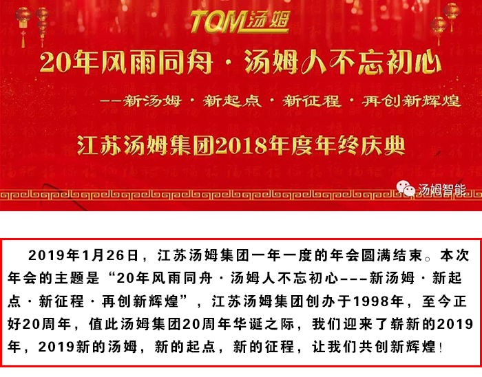 20年風(fēng)雨同舟·湯姆人不忘初心---江蘇湯姆集團年終慶典圓滿(mǎn)結束!