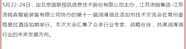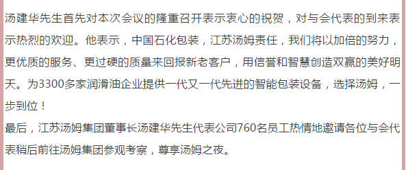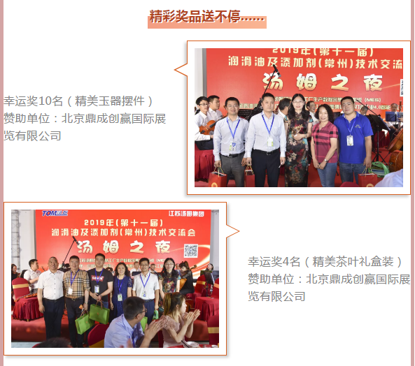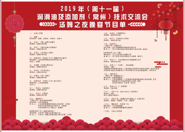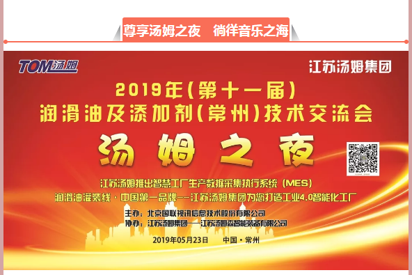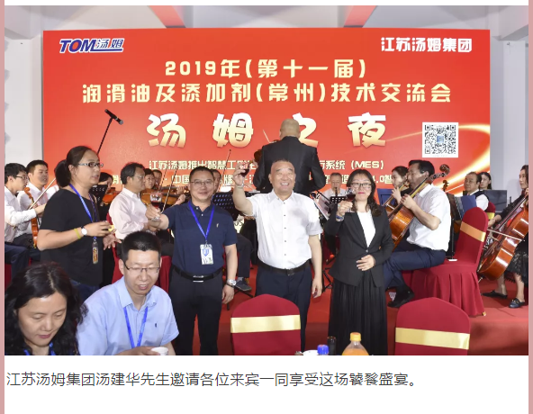 江蘇湯姆集團熱烈祝賀2019年(第十一屆)潤滑油及添加劑(常州)技術(shù)交流會(huì )隆重召開(kāi)。湯姆之夜,群情激昂
