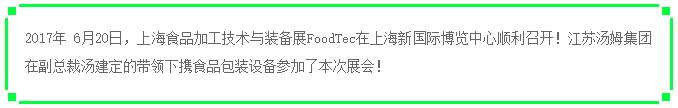 【展會(huì )】江蘇湯姆集團亮相2017·上海食品加工技術(shù)與裝備展,并取得豐碩成果!