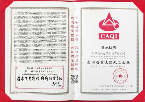 全國質(zhì)量誠信先進(jìn)企業(yè)