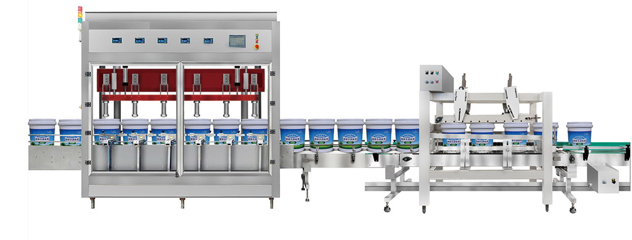 本流水線(xiàn)適用于涂料的定量灌裝和旋蓋。